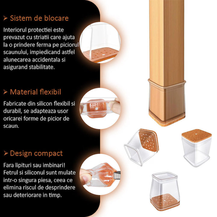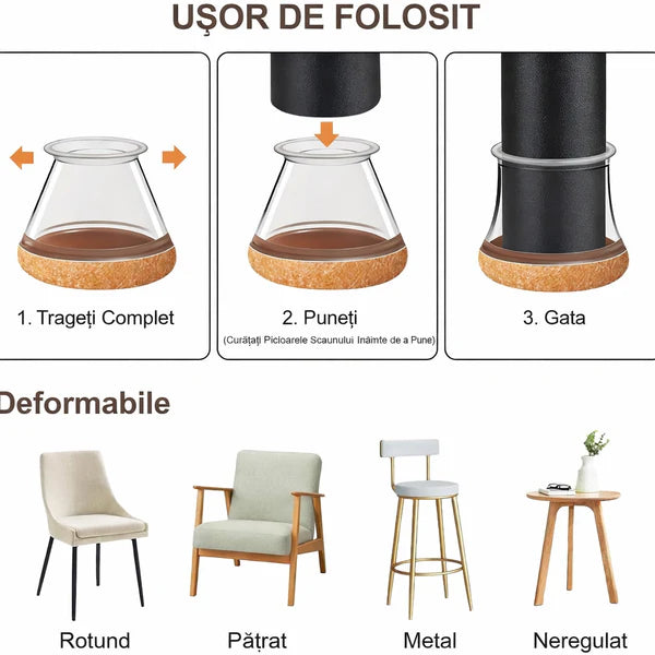 Protectii Picioare Scaun/Mobila Din Silicon Si Pasla